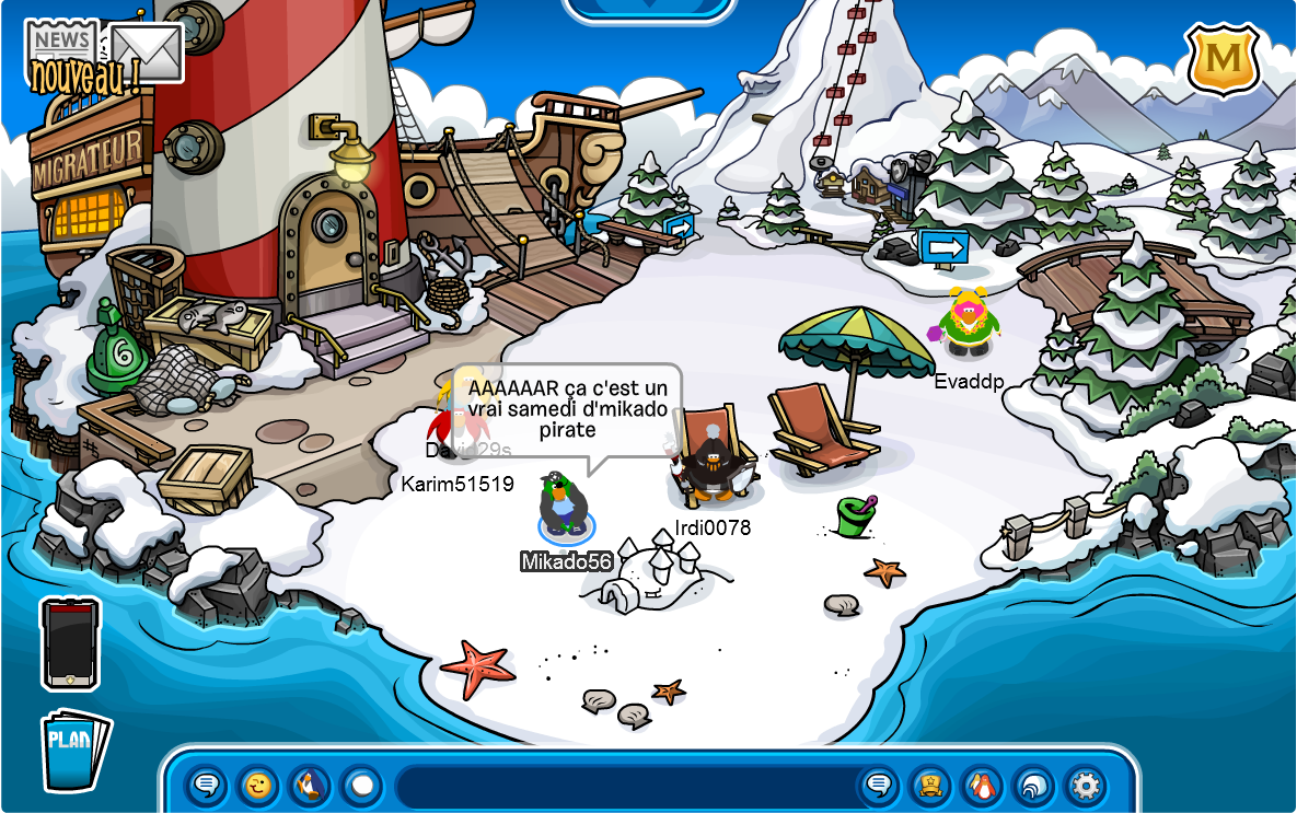 Pour le Samedi Mikado, une course de luge étais prévue ! Mais au changement de programme, exusez-moi, nous irons s'faire un concours de chasse aux trésors dans le navire ! ça vous dérange pas ? N'oubliez pas ! Tenue de pirate (Code: PIRATA) et rendez-vous à 16:00 sur Marmotte à la Plage devant le Migrateur !